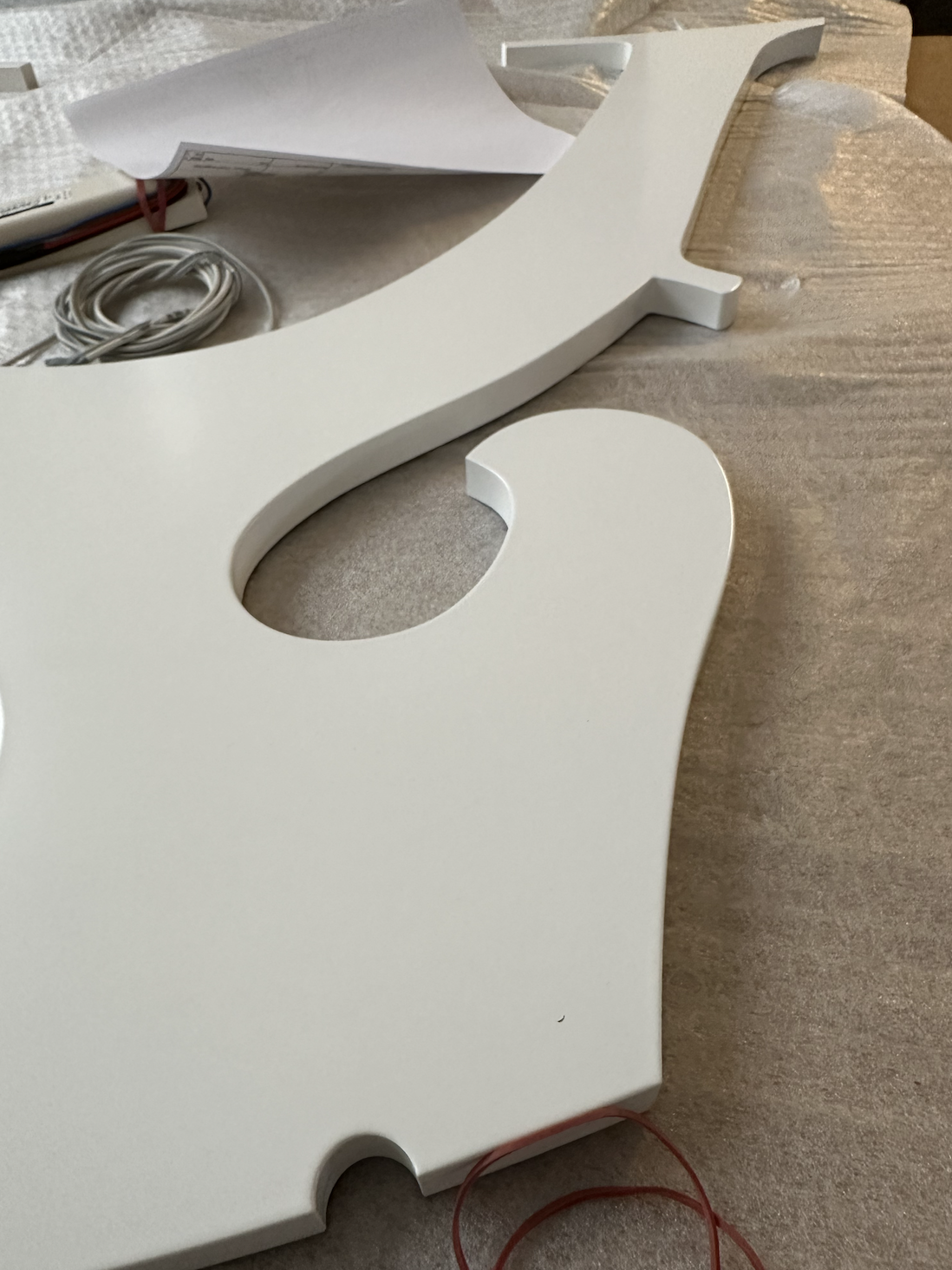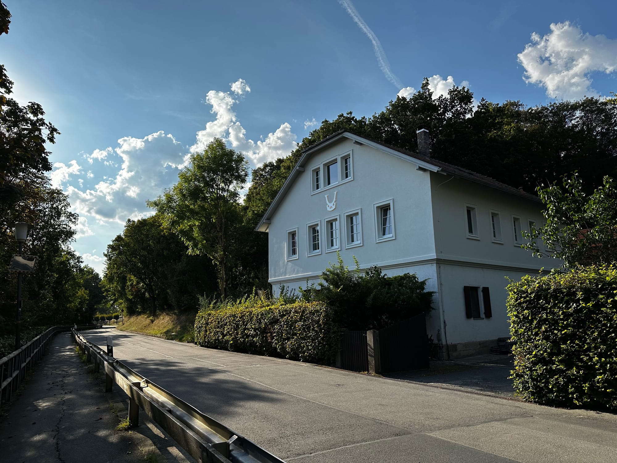 Wo an der Fassade des ehemaligen Forsthauses einst ein Geweih hing, hängt heute das Logo der Klangdomäne: das Steweih. Das Steweih ist eine Wortneuschöpfung, welche sich aus den beiden Bedeutungskomponenten Cellosteg und Geweih zusammensetzt. Die Vorlage für das 90 cm x 87 cm große Steweih aus Acryl, welches die Fassade der Klangdomäne Festungshof ziert, lieferte uns das Bamberger Geigenbauerpaar Dreysse & Hoffmann. Die Anfertigung erfolgte durch den Coburger Meisterbetrieb Schnappauf.